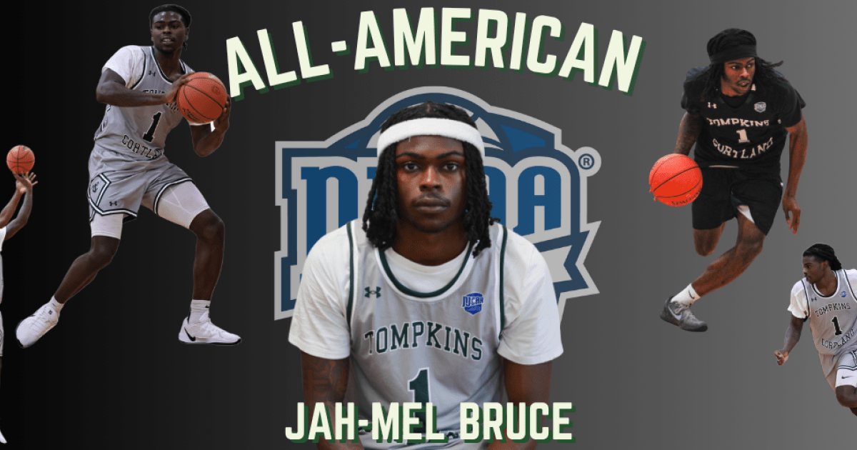 Tompkins Cortland Community College men's basketball player Jah-Mel Bruce has been selected a National Junior College Athletic Association (NJCAA) All-American. He is the fifth player to earn All-American honors in the history of the Panthers men's basketball team following Javonte Long (2025), Khai Pugh (2024), Tyseem Lyles (2014), and Jude Princivil (1995).