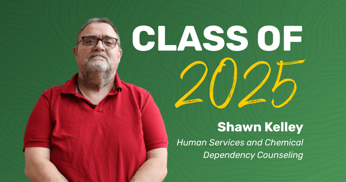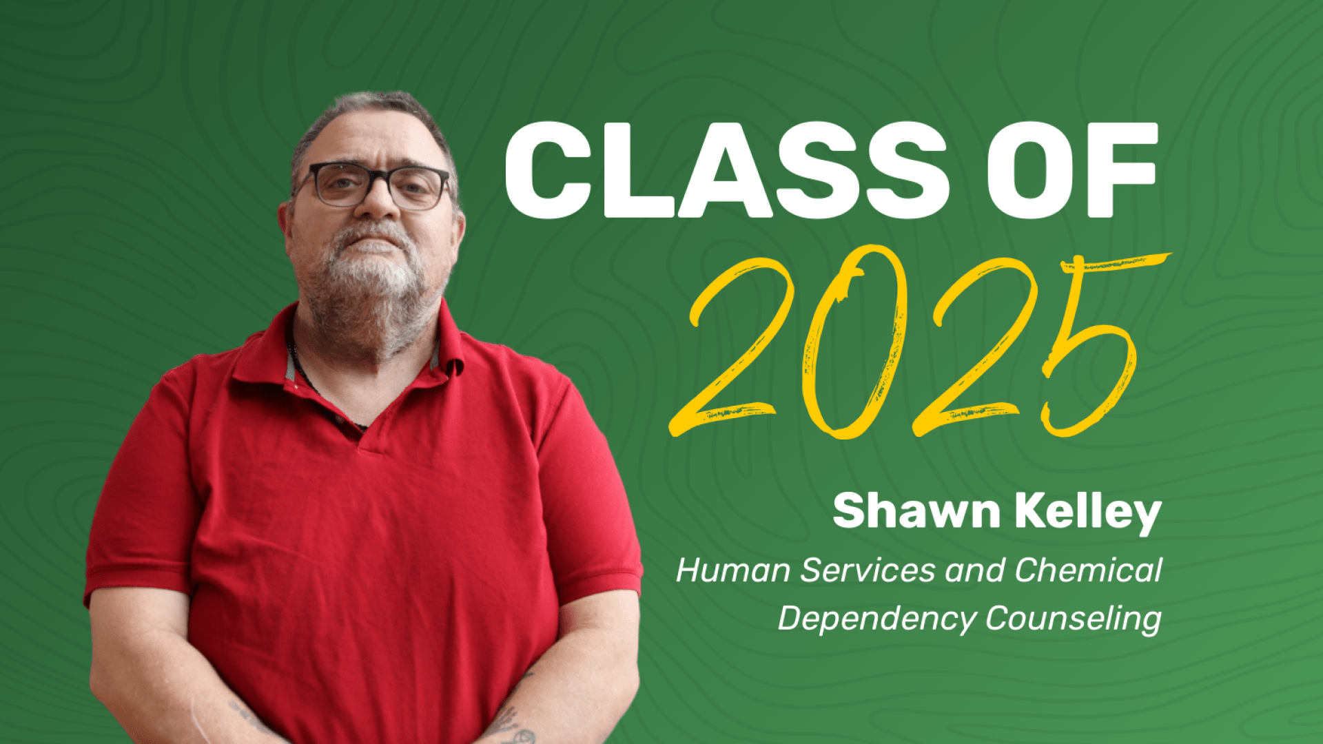 Shawn Kelley doesn’t want to hear any excuses of why someone can’t come back to school. After a life-altering accident, his wife convinced him that he could do something he didn’t know he could – he started college at 57 years old. “She supported me emotionally the entire time,” he said. “When I thought about giving up, she convinced me to stick with it.” He earned his first degree in December 2024 (Human Services) and later this month he will cross the stage with a second degree (Chemical Dependency Counseling). Then it’s on to helping others. “I want to become a chemical dependency counselor and help others beat their addictions.”