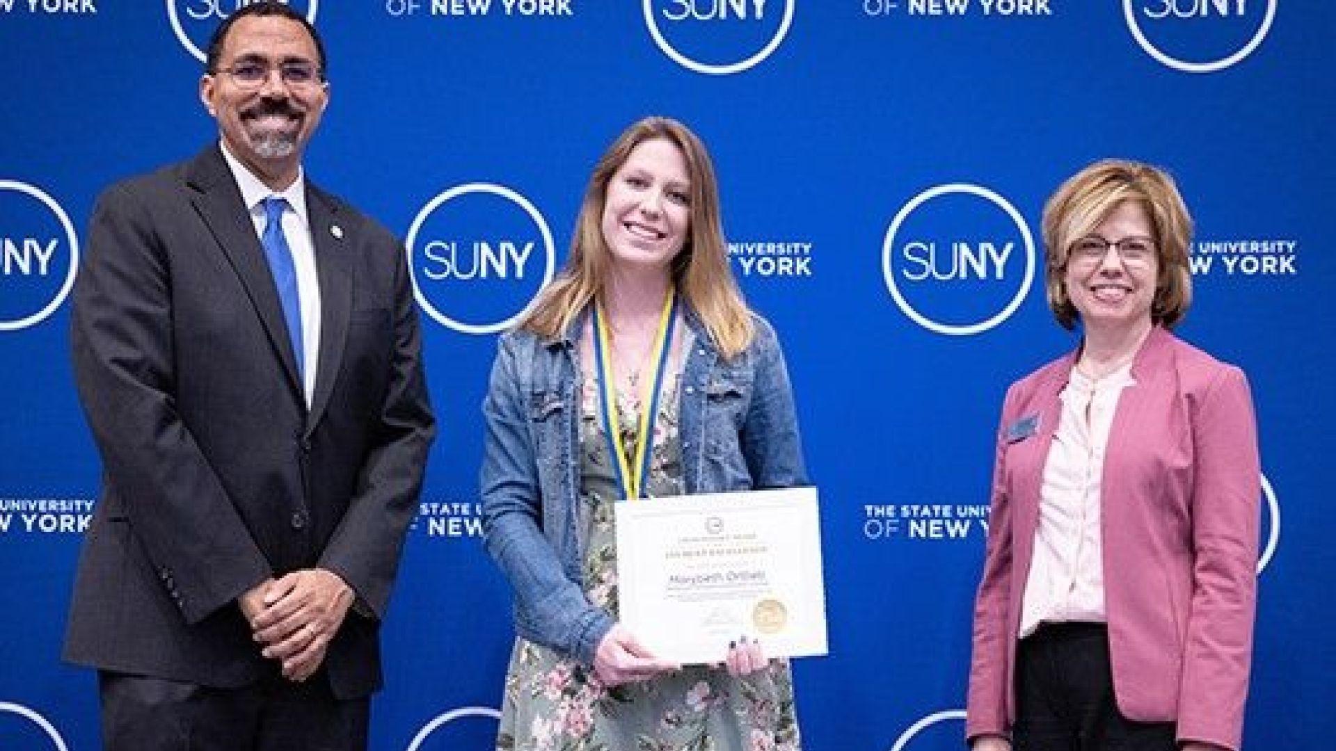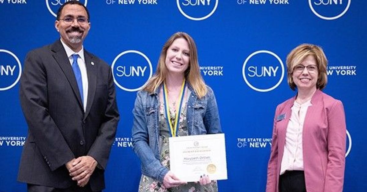 Two Tompkins Cortland Community College students have been recognized with the 2024 Chancellor's Award for Student Excellence by the State University of New York. Marybeth Ortlieb and Louis Scholl were among the students honored at a reception in Albany on April 11.