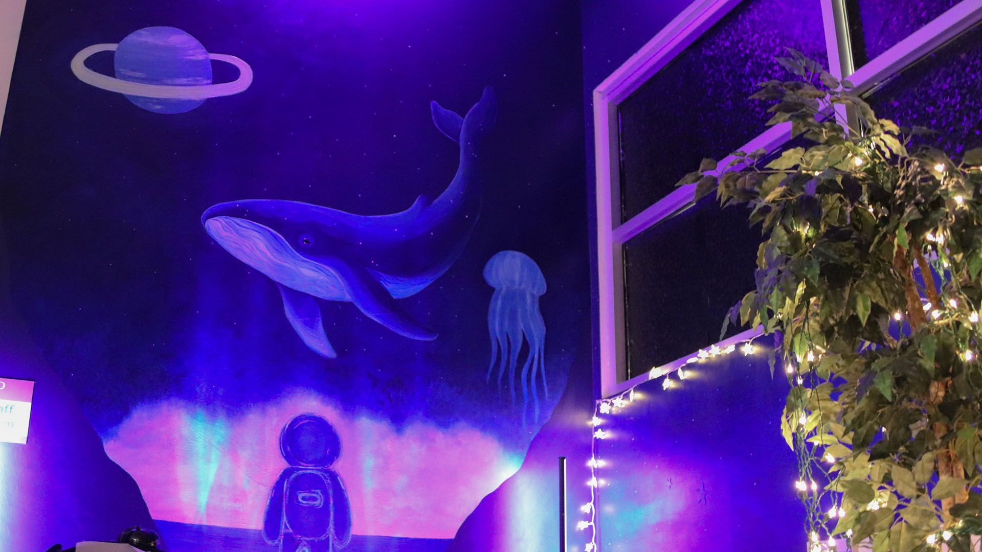 VanKanegan started the project by having her students meet with Karen Rachetta, TC3’s coordinator of access and equity services, and the person who led the effort to create this space at TC3. “We began by meeting to understand the goals of the Sensory Space and the desired outer space theme,” said VanKanegan. “This project was a true collaboration. Each student came to class with individual sketches and ideas, which we refined together through group discussion and a voting process to ensure the final composition reflected the goals of the Sensory Space.”