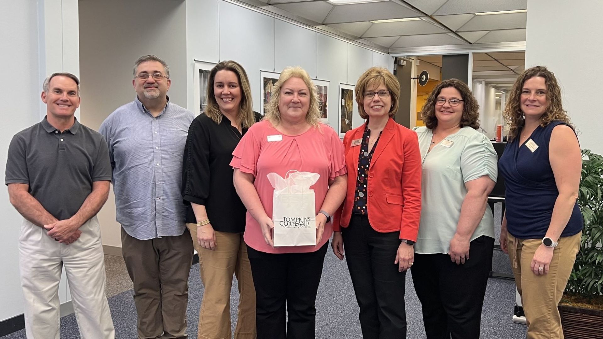 Photo Caption (from left to right): Assistant Director of Financial Aid James Janke, Vice President of Finance Dionysios Panagitsas, Interim Director of Financial Aid Sarah Dockstater, Employee of the Month Wendy Donenko, President Amy Kremenek, Enrollment Service Specialist Laura Path-Falso, Bursar Tracy Liddington